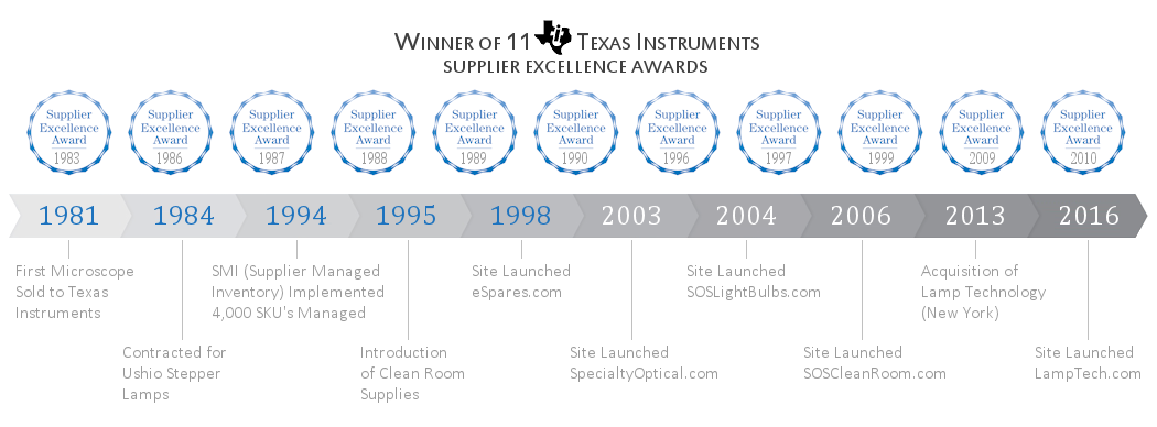 Specialty Optical Systems was founded in Dallas, Texas, in May 1981, serving high-tech customers with microscopes, optics, and technical lighting. From the beginning, our work supported controlled environments where cleanliness, precision, and reliability are essential.